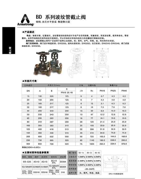 阿姆斯壯BD-16/BD-25型波紋管截止閥