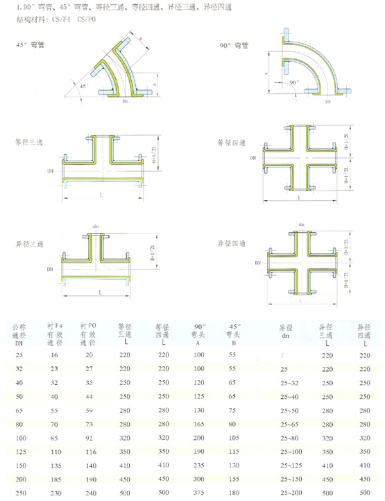 二、YJG型異徑管設(shè)計(jì)特點(diǎn): 選用最好的聚四氟乙烯樹脂經(jīng)合理配方,采用整體模壓,將氟塑料與鋼管基體熱熔結(jié)合。使整個(gè)襯氟管(件)具有以下特點(diǎn): a. 無搭接縫、耐沖擊、耐老化、耐正負(fù)壓。表面平滑,任何形狀鋼件均可襯。 b. 適用溫度:-60~150℃ c. 通用壓力:-0.07Mpa~2.5Mpa