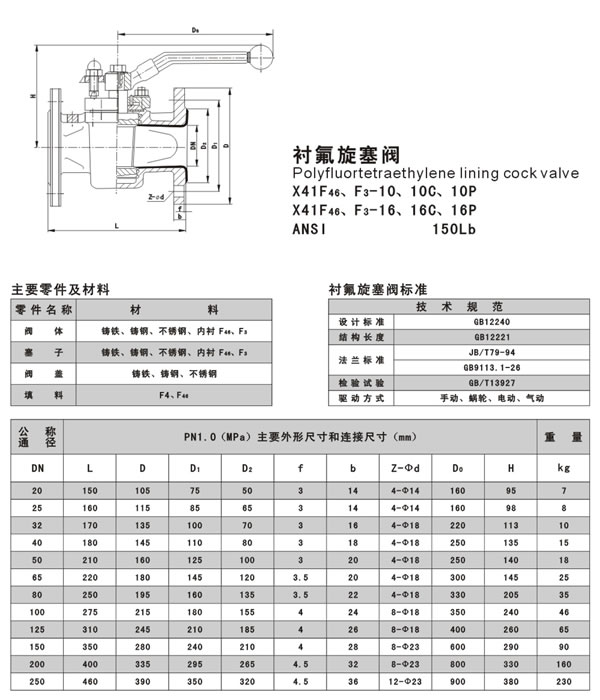 X43F46襯氟旋塞閥是用帶通孔的塞體作啟閉件,塞體隨閥桿轉(zhuǎn)動,以實(shí)現(xiàn)啟閉動作的閥門。旋塞閥啟閉迅速、流體阻力小。基本系列有襯里旋塞閥(全襯型) 和襯套旋塞閥(半襯型)。旋塞閥多用于截?cái)嘟橘|(zhì)流動,也可分配(三通旋塞閥)。襯氟旋塞閥是為了適應(yīng)一些具有強(qiáng)酸、強(qiáng)堿的腐蝕性環(huán)境,石油、化工、食品等多個(gè)特殊領(lǐng)域的需要,在常規(guī)旋塞閥的閥內(nèi)和閥板上襯聚四氟,使介質(zhì)和閥體隔離,達(dá)到防腐的效果。襯氟旋塞閥在常規(guī)條件下可以替代不銹鋼閥體,具有更高的性價(jià)比。特別是具有嚴(yán)重腐蝕性介質(zhì)的使用場合,如:硫酸、氫氟酸、磷酸、氯氣、強(qiáng)堿、王水等具有強(qiáng)腐蝕性的介質(zhì)。